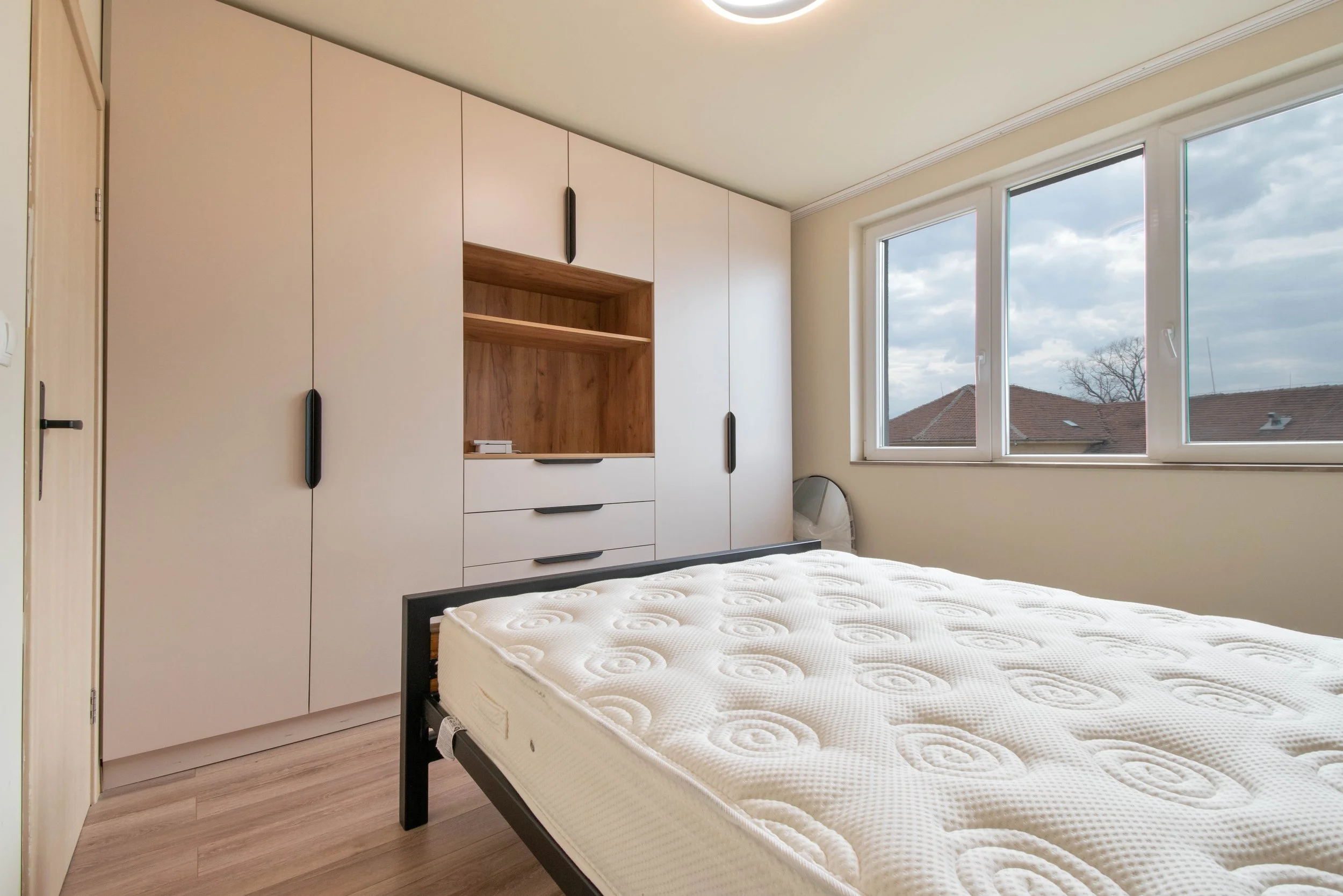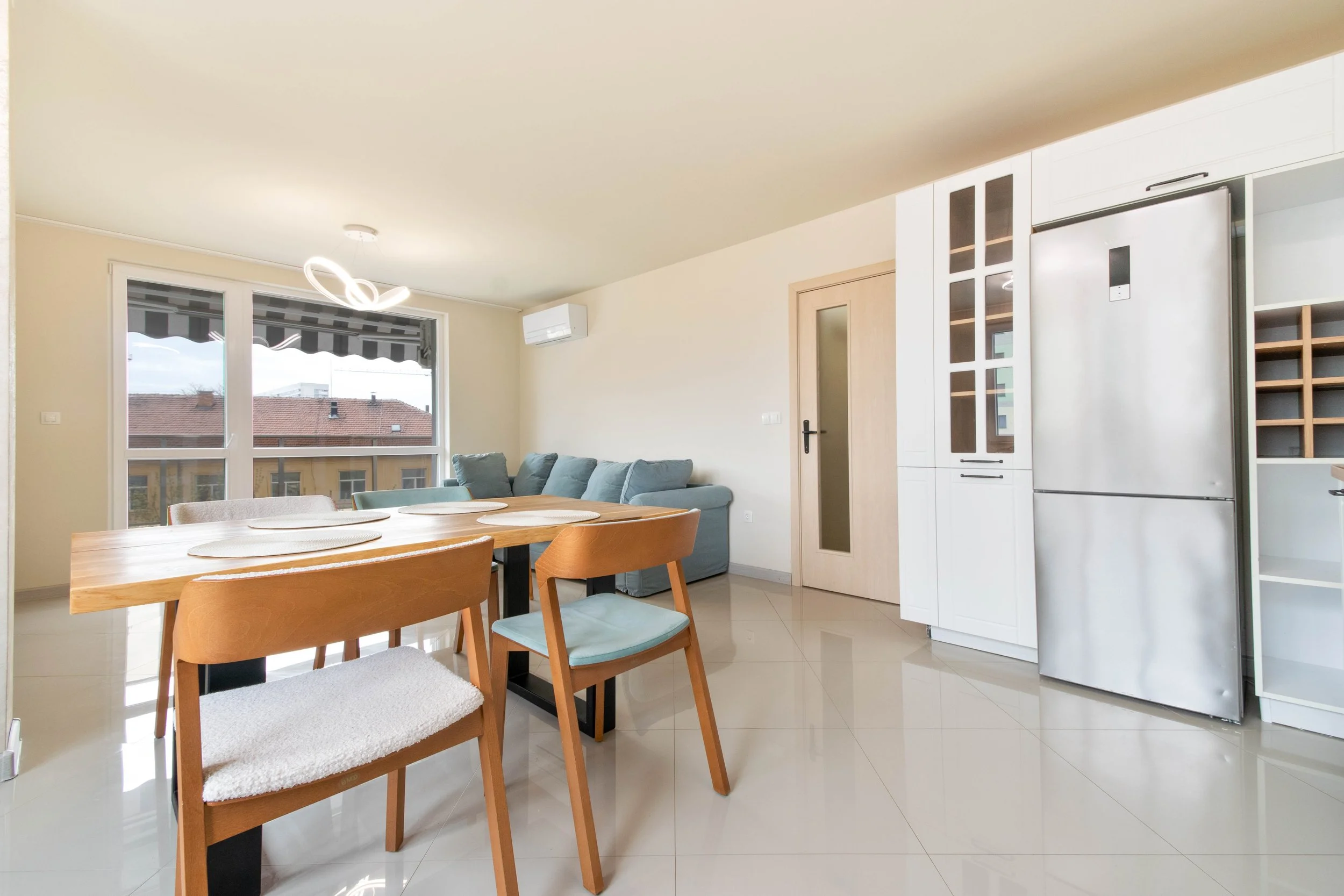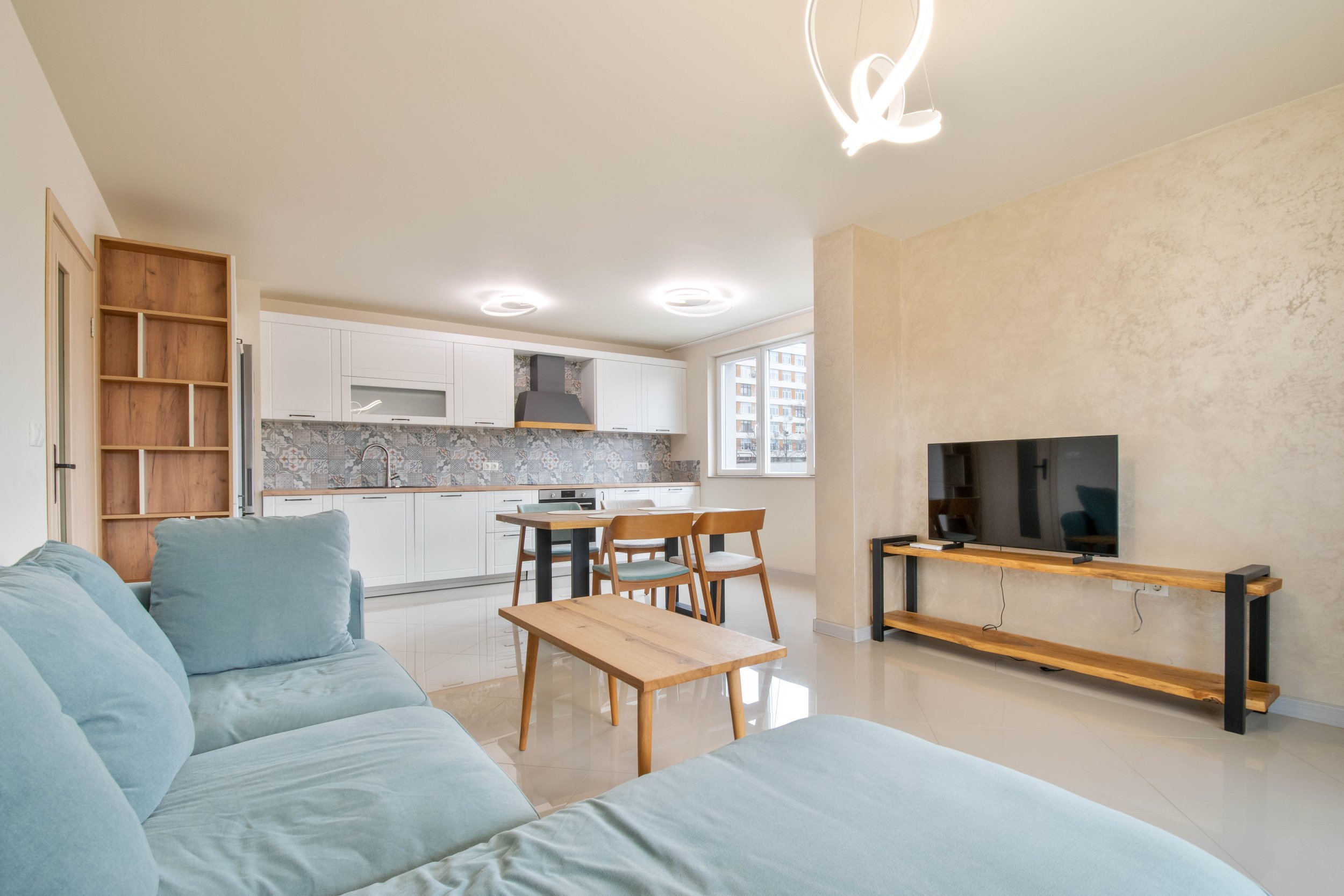 Жилището се състои от дневна с кухня, две спални, баня с тоалетна и тераса. Напълно обзаведен. Има възможност за външно паркомясто.
